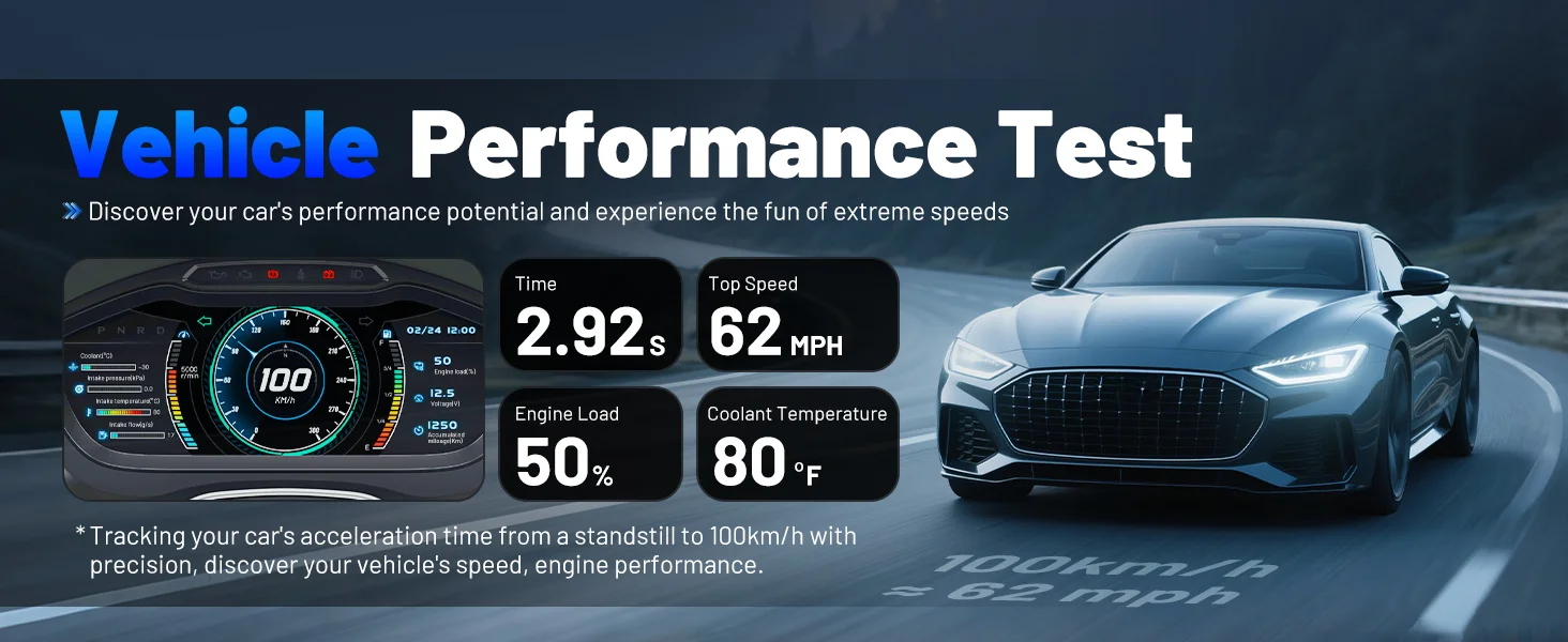 AD20PRO Bluetooth OBDII Bluetooth scanner for iphone android also provides additional features like Performance Test. Performance Test enables you to measure datas like 100 km/h acceleration time, top speed, engine load, engine coolant temperature.