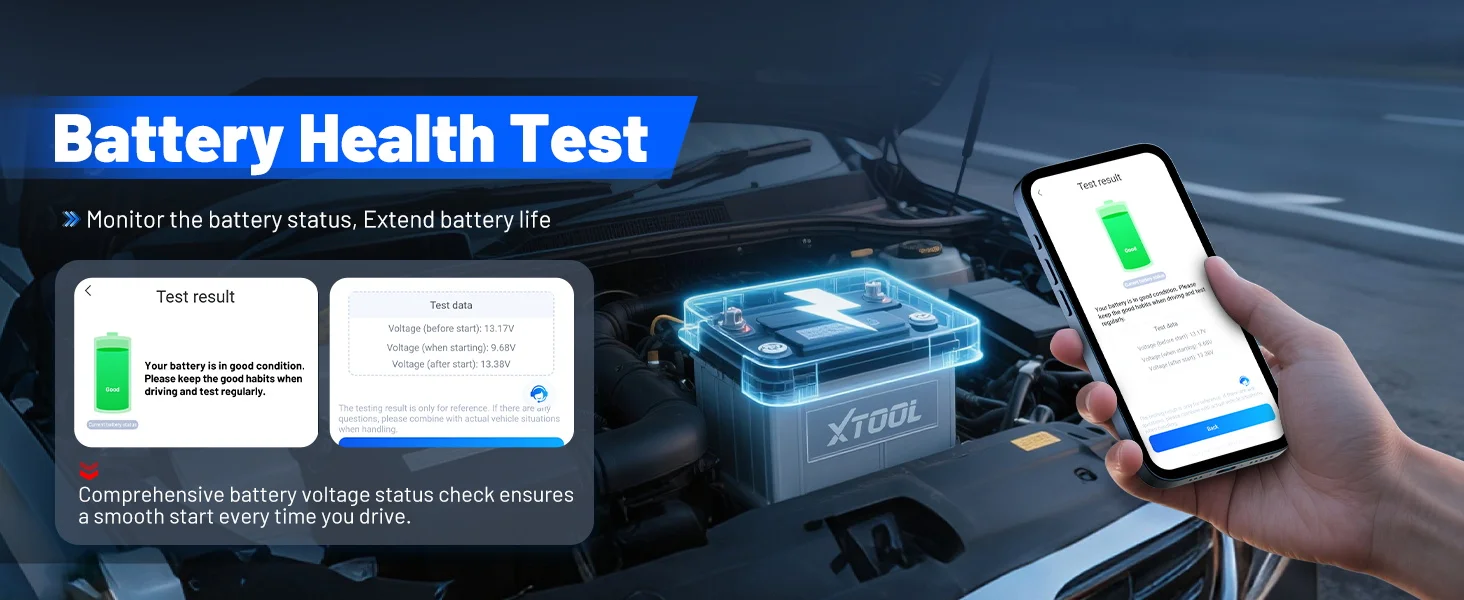 2. AD20Pro supports Bettery Test (continuously caring about the health of the car battery) and maintenance light reset function