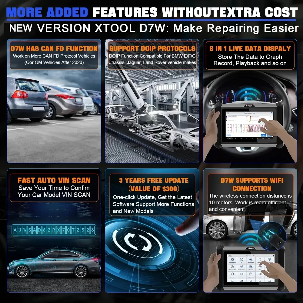 🆓Fast Aut VIN Scan: XTOOL D7W is based on the latest VIN auto-scan function, which can quickly identify the vehicle and scan all diagnosable ECUs and run diagnostics on the selected system. For vehicles that do not support the automatic VIN scan feature, you can manually enter the vehicle VIN.